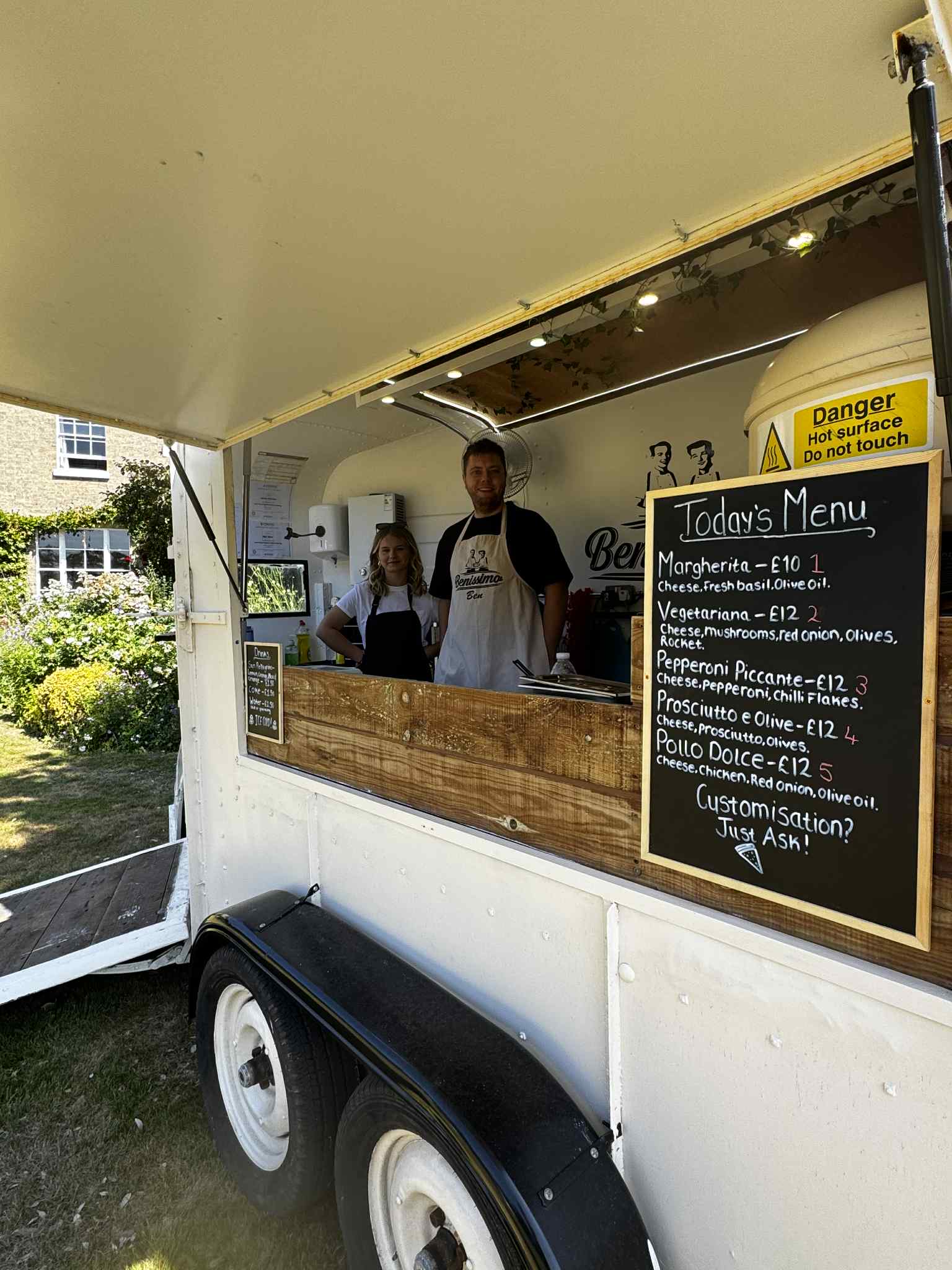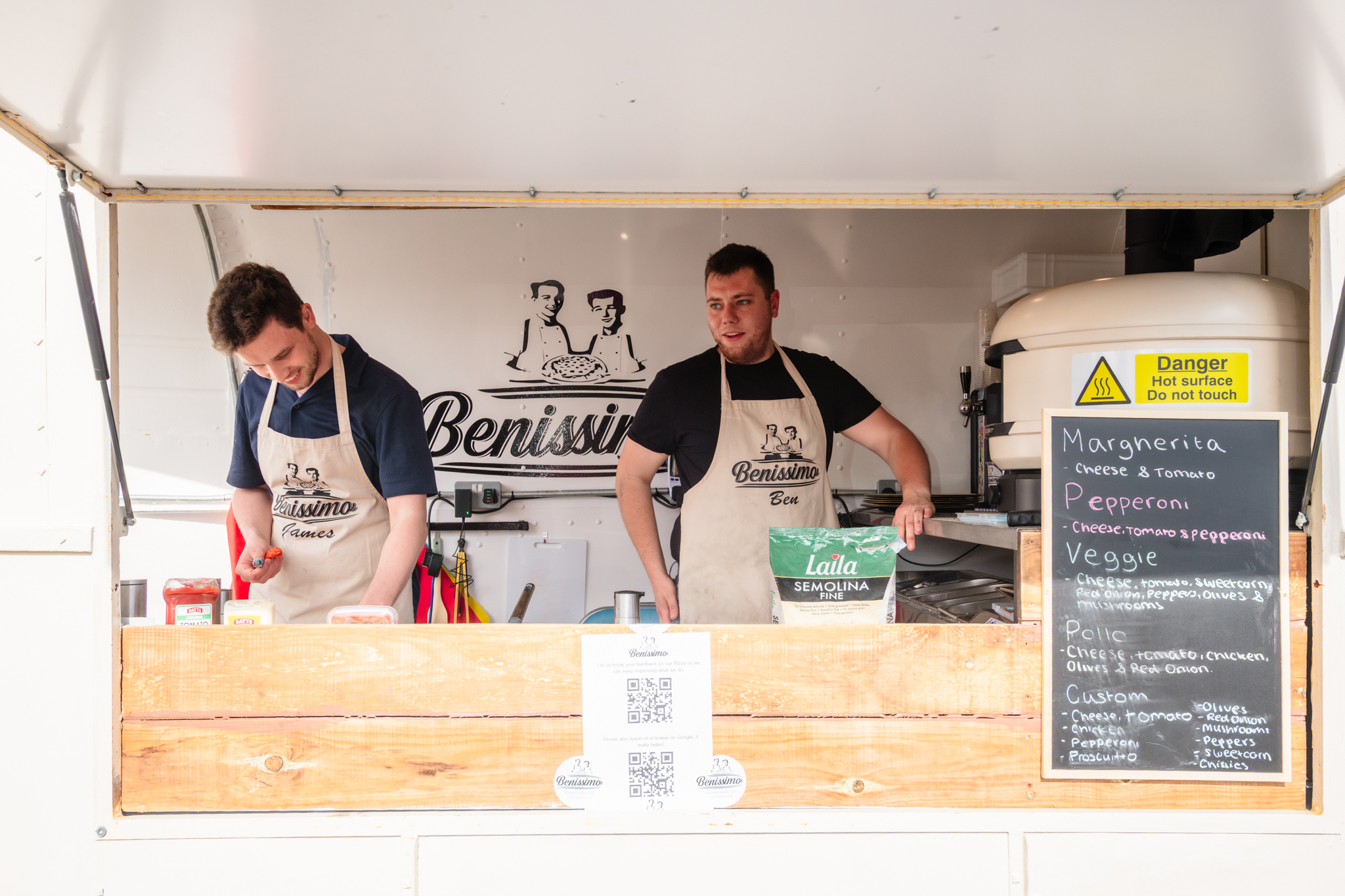 At Benissimo, we’re all about proper, freshly made pizzas with top-notch ingredients. From our converted horsebox, we bring the taste of Italy to East Anglia and beyond, serving up authentic Italian-style pizza from our stone baked ovens with a warm, friendly touch.