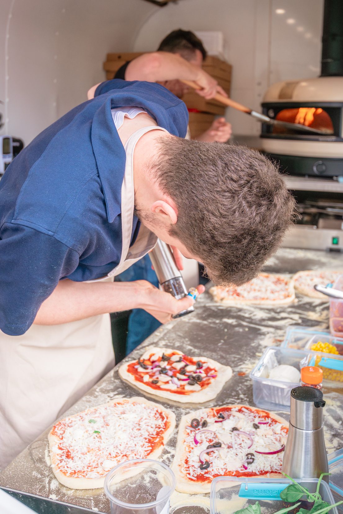 Cheese, pepperoni, red onion, rocket.