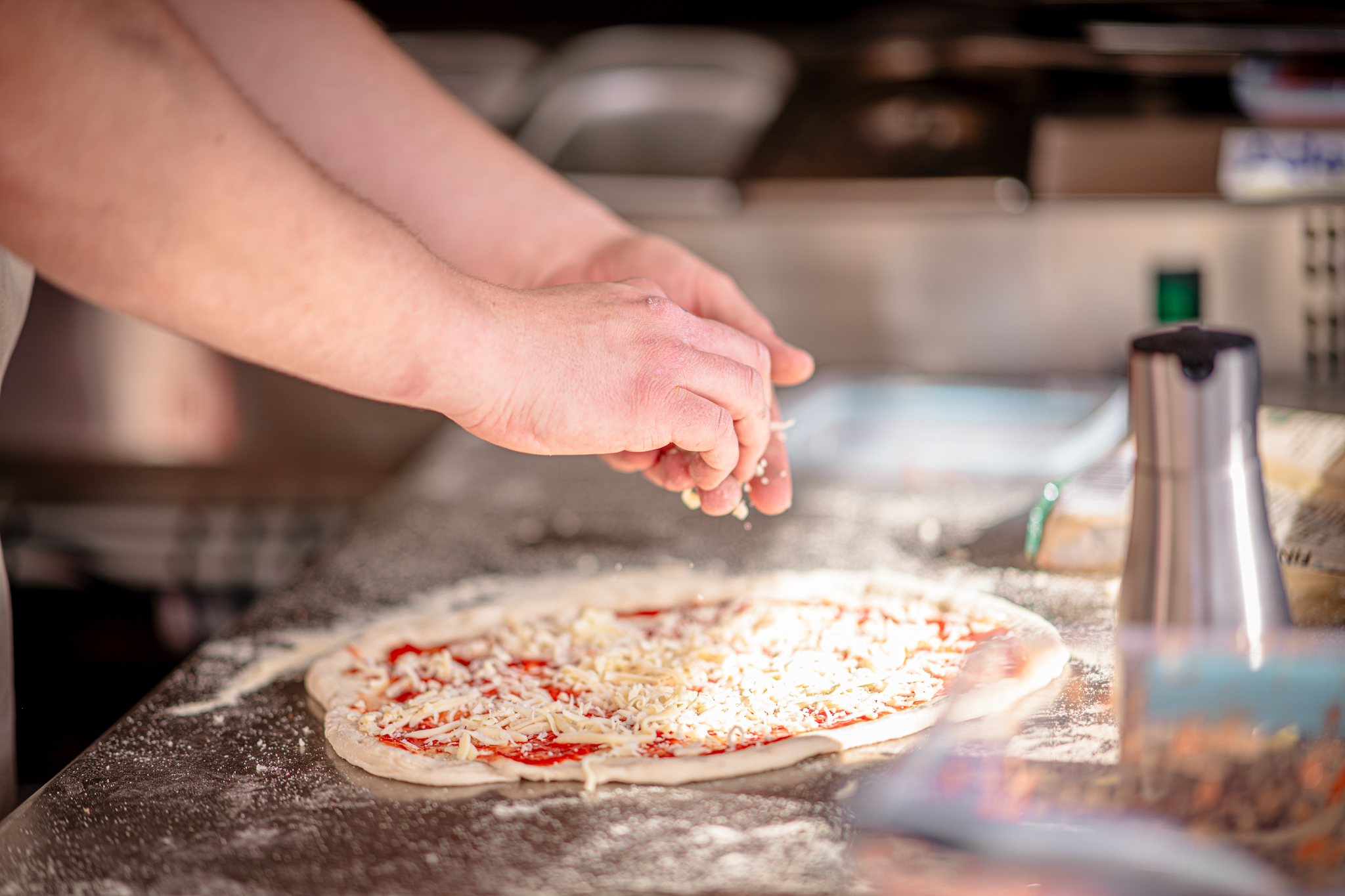 Cheese, pepperoni, chilli flakes.
