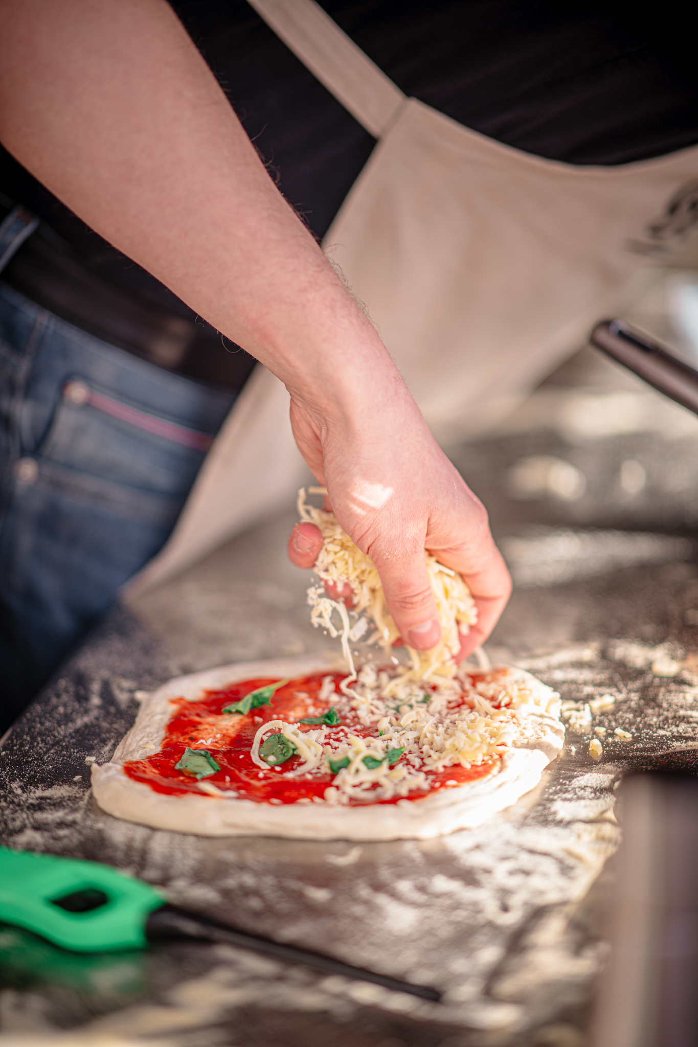 Cheese, fresh basil, olive oil